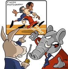 This picture gives the general representation of what the twelfth amendment stands for. The twelfth amendment overall deals with the candidacy race for the vice-president and the president. This shows exactly that. Whoever wins will have won the most votes.